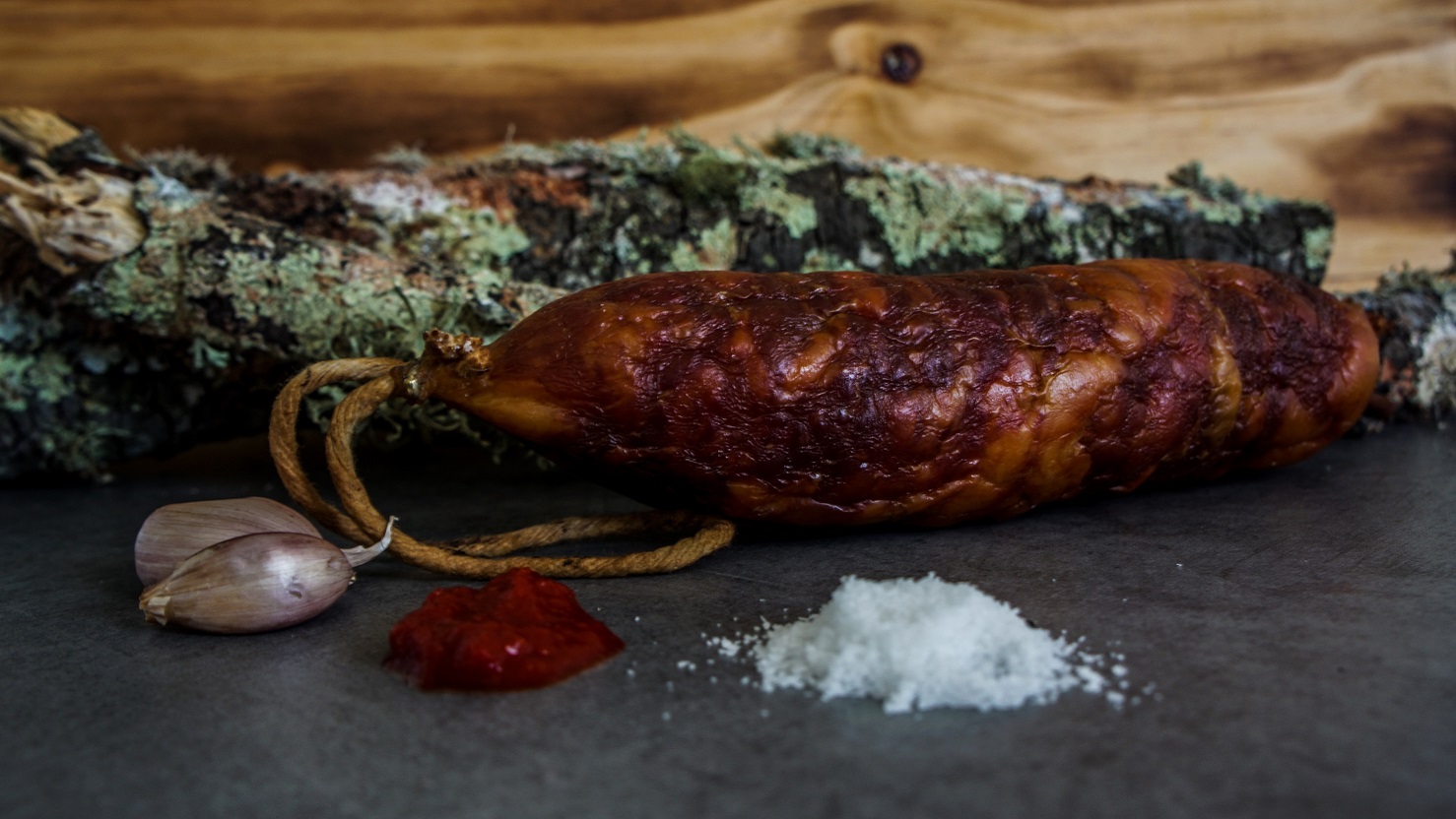 Carne magra de Porco Branco, Água, Massa de Pimentão, Massa de Alho(Sal e Antioxidante E334); Aditivos: Proteína de SOJA e LEITE, amido, cloreto de Sódio, pimentão doce; Dextrose, Emulsionantes (E451), Antioxidantes(E301,E331), Conservantes(E250,E252)
